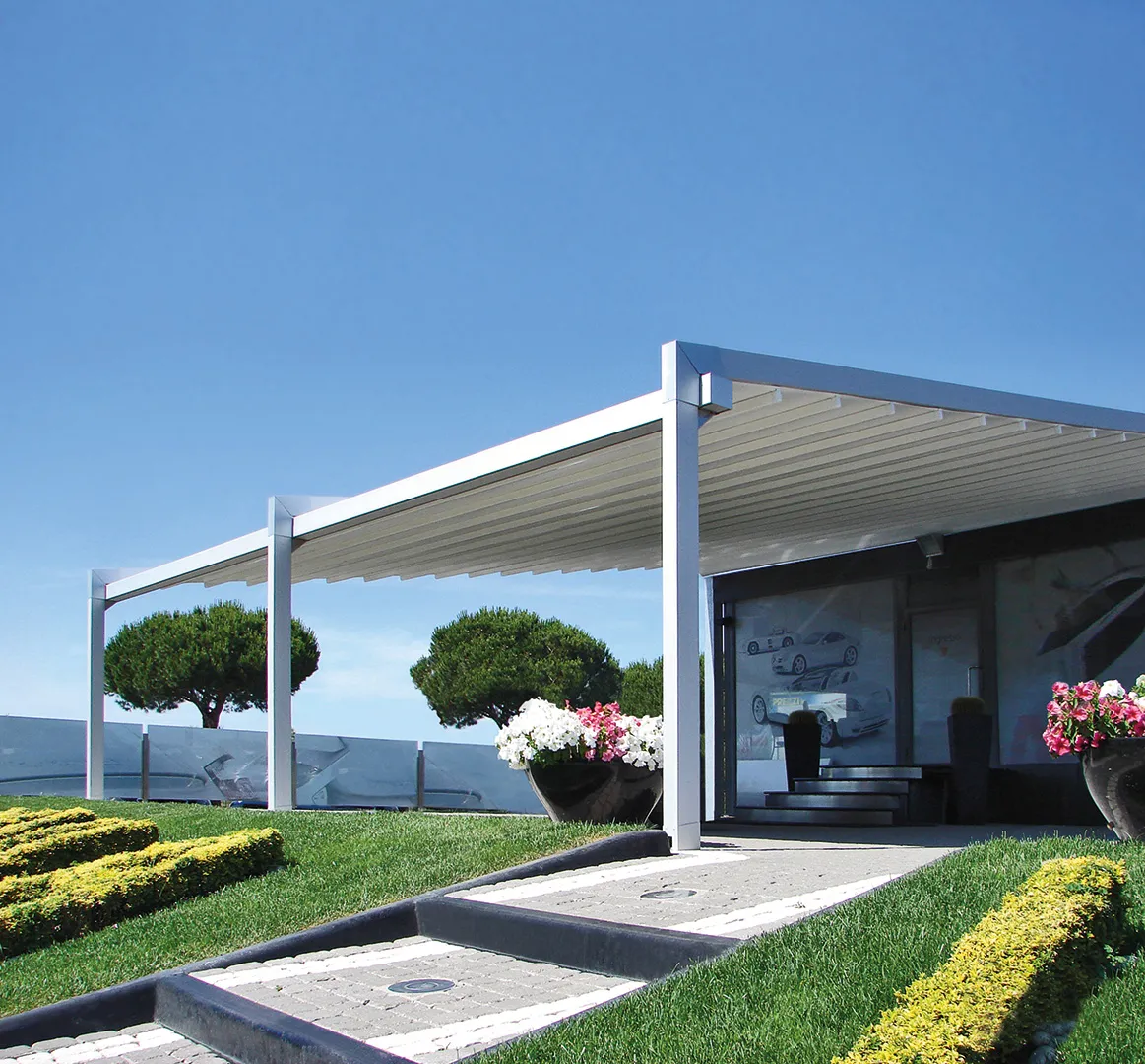 La pergola EVO est une solution outdoor premium qui combine une structure en aluminium moderne à une toile rétractable motorisée performante, offrant une protection solaire ajustable, une grande liberté d’usage et une esthétique élégante. Conçue pour sublimer terrasses résidentielles, jardins, cafés, hôtels et espaces commerciaux, elle permet de profiter de l’extérieur avec confort thermique maîtrisé et ombre personnalisable selon la lumière du jour.