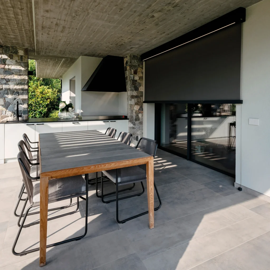 Sa grande force réside dans son toile technique résistante guidée par câbles latéraux, qui assure une protection solaire efficace, limite l’éblouissement et offre une intimité maîtrisée sans compromettre la circulation d’air. Grâce à sa structure en aluminium robuste et à ses lignes soignées, le T-BOX CABLES apporte une solution élégante, fiable et confortable à chaque espace extérieur.