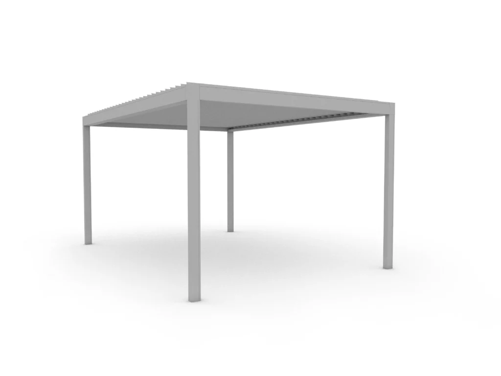 Son point fort réside dans ses lames brise-soleil motorisées orientables de 0° à 140°, offrant un contrôle précis de l’ensoleillement et une régulation naturelle de la température sous la pergola. Grâce à ses profils fins (poteaux 10 × 15 cm) et à son système d’évacuation d’eau intégré dans les montants, la Vision combine esthétique minimaliste, performance climatique et fiabilité technique dans une seule structure.